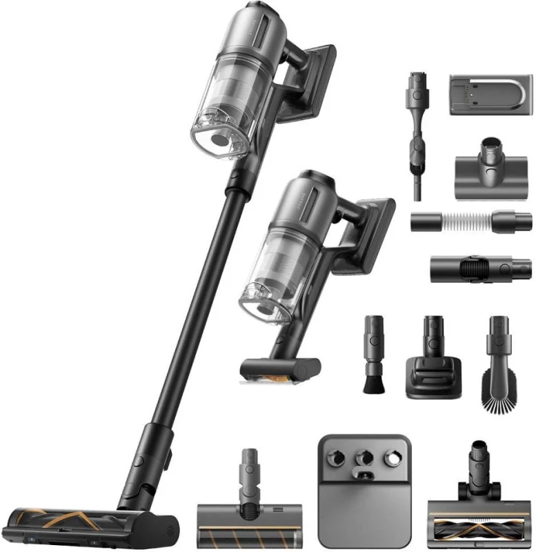 Бренд: Dreame; Максимальная мощность, Вт: 855; Мощность всасывания, Вт: 310; Емкость пылесборника, л: 0,6; Количество ступеней фильтрации: 5; HEPA-фильтр: HEPA H14; Питание: аккумулятор 8х3200 мАч; Время зарядки, ч: 4; Время работы от аккумулятора, мин: 90; Сухая: есть