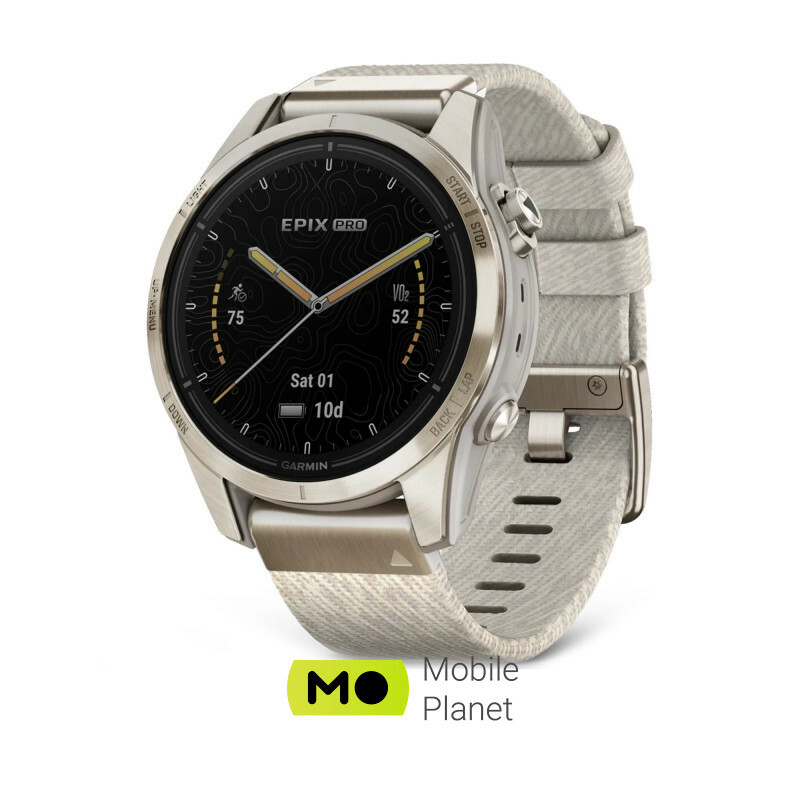 Mobile Planet, Інтернет-магазин мобільної техніки (Mobileplanet)\\Garmin Epix Pro Gen 2 Sapphire 42mm Soft Gold w. Cream H. Nylon Band (010-02802-20)