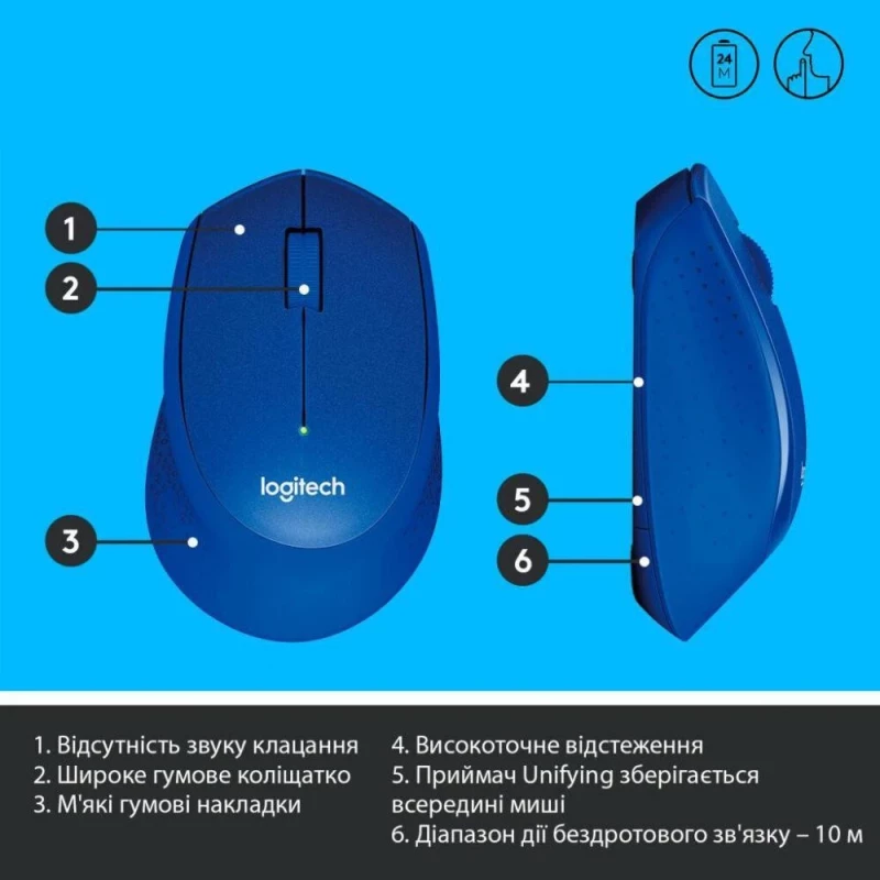 Mobile Planet, Інтернет-магазин мобільної техніки (Mobileplanet)\\Logitech M330 Silent Plus Blue (910-004910)