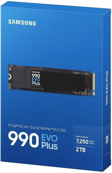 Бренд: Samsung; Линейка: 990 EVO Plus; Объем, ГБ: 2000; Интерфейс: M.2 (PCI-E 5.0); Тип флеш-памяти: V-NAND TLC; Контроллер: Samsung Piccolo; Поддержка TRIM: есть; Серия: 990 EVO Plus; Форм-фактор: M.2 2280; Размеры, мм: 80.15x22.15x2.38