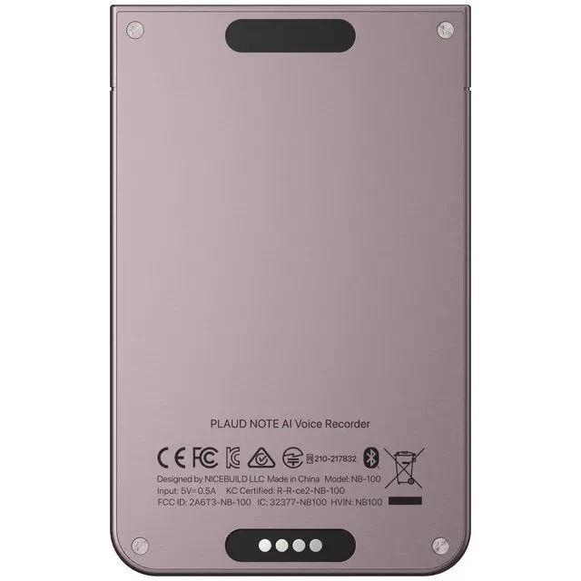 Бренд: PLAUD; Поддержка форматов записи: MP3/WAV; Максимальная продолжительность записи, ч: 30; Объем встроенной памяти, ГБ: 64; Поддержка сменных карт памяти: нет; Функция активации голосом: нет; MP3-плеер: нет; Интерфейс: Wi-Fi; Питание: Li-Pol 400 мАч