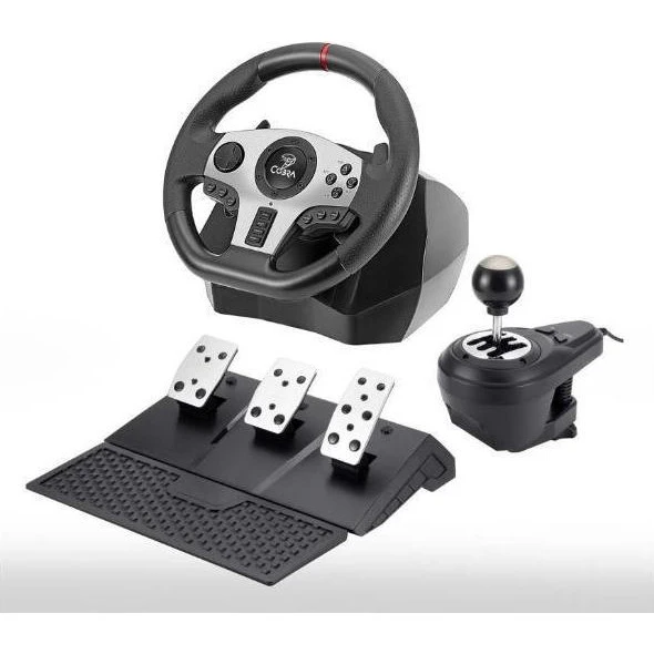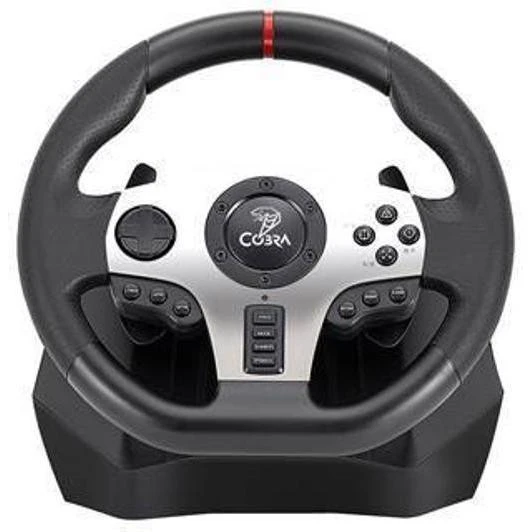 Бренд: Cobra; Тип манипулятора: Комплект (руль, педали); Тип подключения: Проводное; Совместимые платформы: PS4, PS3, Xbox One X/S, Xbox 360, PC, Nintendo Switch; Количество кнопок: 20; Наличие и тип обратной связи: вибрационная; Диапазон вращения руля, градусов: 900; Выделенная рукоятка КПП: есть; Цвет: черный; Дополнительно: База с педалями (газ/сцепление/тормоз)