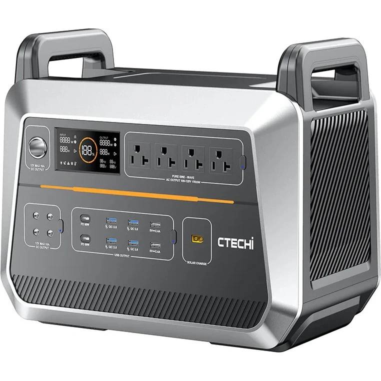 Бренд: CTECHi; Розетка AC 230В: 4 (110В); USB Type-C: 2; USB Type-A: 6; DC: 4; Автомобильная розетка (прикуриватель): 1; Номинальная мощность, Вт: 2000; Мощность USB Type-C, Вт: 100; Мощность USB Type-A, Вт: 18;12; Мощность DC, Вт: 38