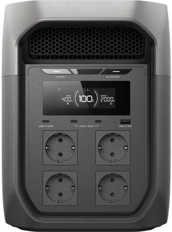 Бренд: EcoFlow; Розетка AC 230В: 4; USB Type-C: 3; USB Type-A: 1; DC: 1; XT60: 2; Номинальная мощность, Вт: 2400; Пиковая мощность, Вт: 4800; Мощность USB Type-C, Вт: 100; Мощность USB Type-A, Вт: 18