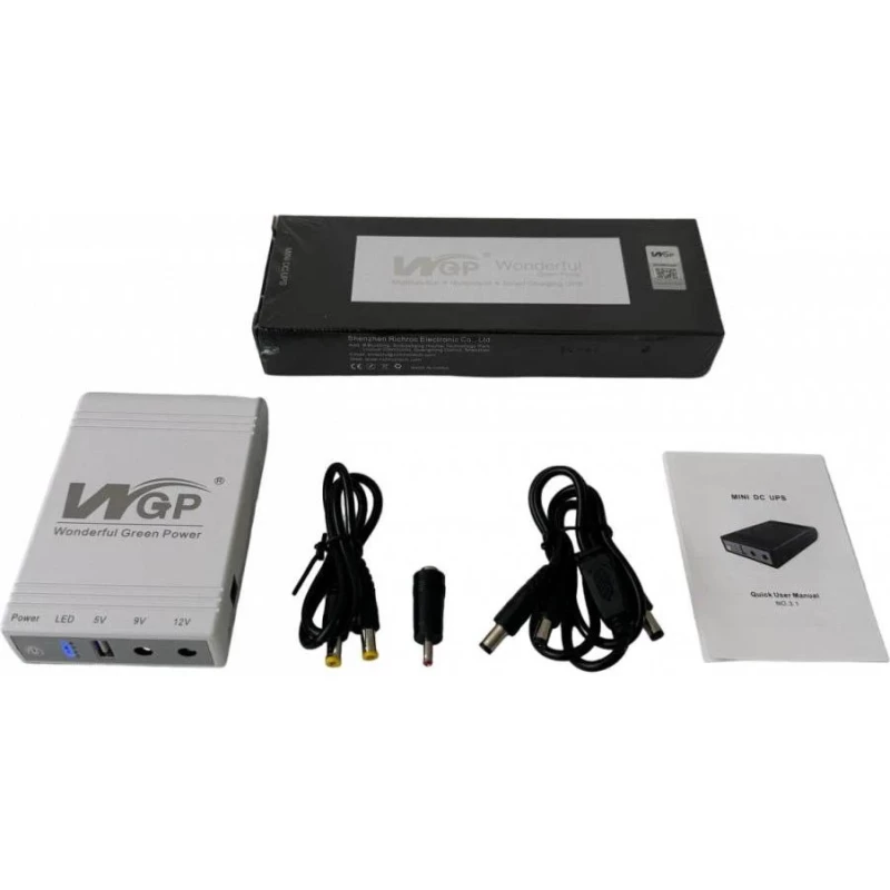 Бренд: WGP; Тип исполнения: классический (tower); Мощность активная, Вт: 36; Время перехода на батарею, мс: 20; Тип выходов (нагрузка/фильтр): DC; Выходные значение питания порта DC: 12V-1A;9V-1A; Напряжение встроенного аккумулятора, В: 12; Емкость встроенного аккумулятора, А·ч: 10.4 (4x 2.6); Количество встроенных аккумуляторов: 4; Вес, кг: 0.2