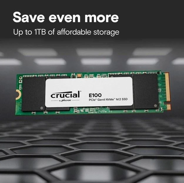 Бренд: Crucial; Линейка: E100; Объем, ГБ: 480; Интерфейс: M.2 (PCI-E 4.0); Тип флеш-памяти: 3D QLC; Поддержка TRIM: есть; Серия: E100; Форм-фактор: M.2 2280; Размеры, мм: 80 x 22 x 2,3