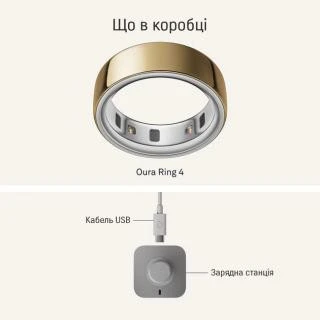 Бренд: Oura; Линейка: Ring 4; Размер кольца: 8; Ширина, мм: 7.9; Толщина, мм: 2.88; Масса, г: 4; Цвет: золотой; Материал корпуса: титан; Водозащита, глубина/ATM: 10; Рабочая температура, °C: от -10 до 52
