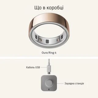 Бренд: Oura; Линейка: Ring 4; Размер кольца: 8; Ширина, мм: 7.9; Толщина, мм: 2.88; Масса, г: 4; Цвет: розовое золото; Материал корпуса: титан; Водозащита, глубина/ATM: 10; Рабочая температура, °C: от -10 до 52