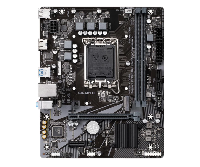 Конструкция блока питания: 3+1+1; Охлаждение блока питания: нет; Совместим с SSD-накопителями m.2 с радиатором: Да - без коллизий; Тип охлаждения чипсета материнской платы: Пассивное; Разъём процессора: Socket 1700; Чипсет: Intel H610; Поддержка памяти: 2 x DIMM